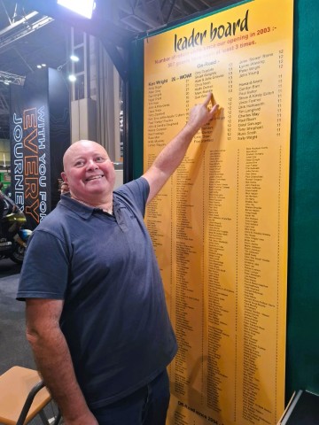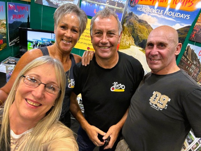 November 2025 – Back from our holiday in Mauritius – lots of cloud & rain though! We’ve just finished exhibiting at the NEC Motorcycle Live Show, great to see so many regulars at our stand & meeting new customers, lots of photos below – sorry if we missed anyone! Also some photos of the 98 inch TV JOHN won in a free draw from Wandrith Tours, New Zealand – what are we going to do with this???